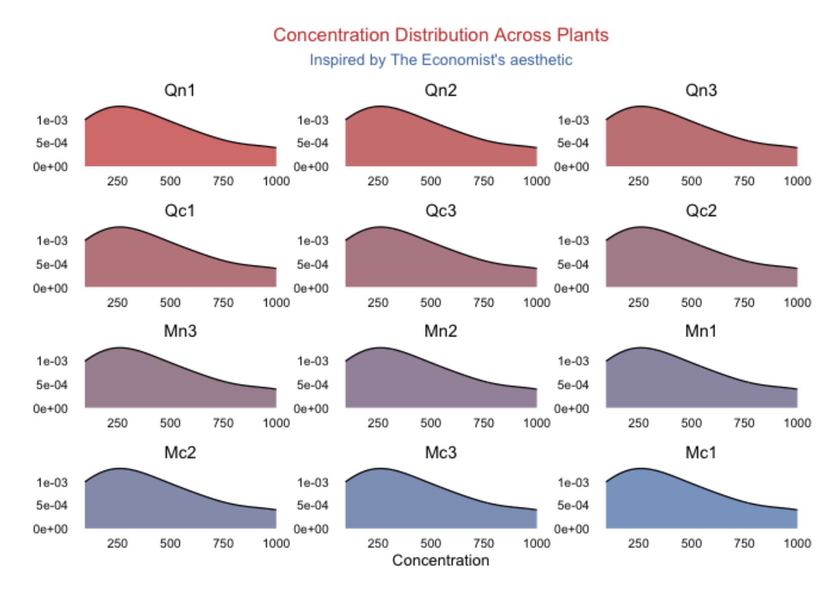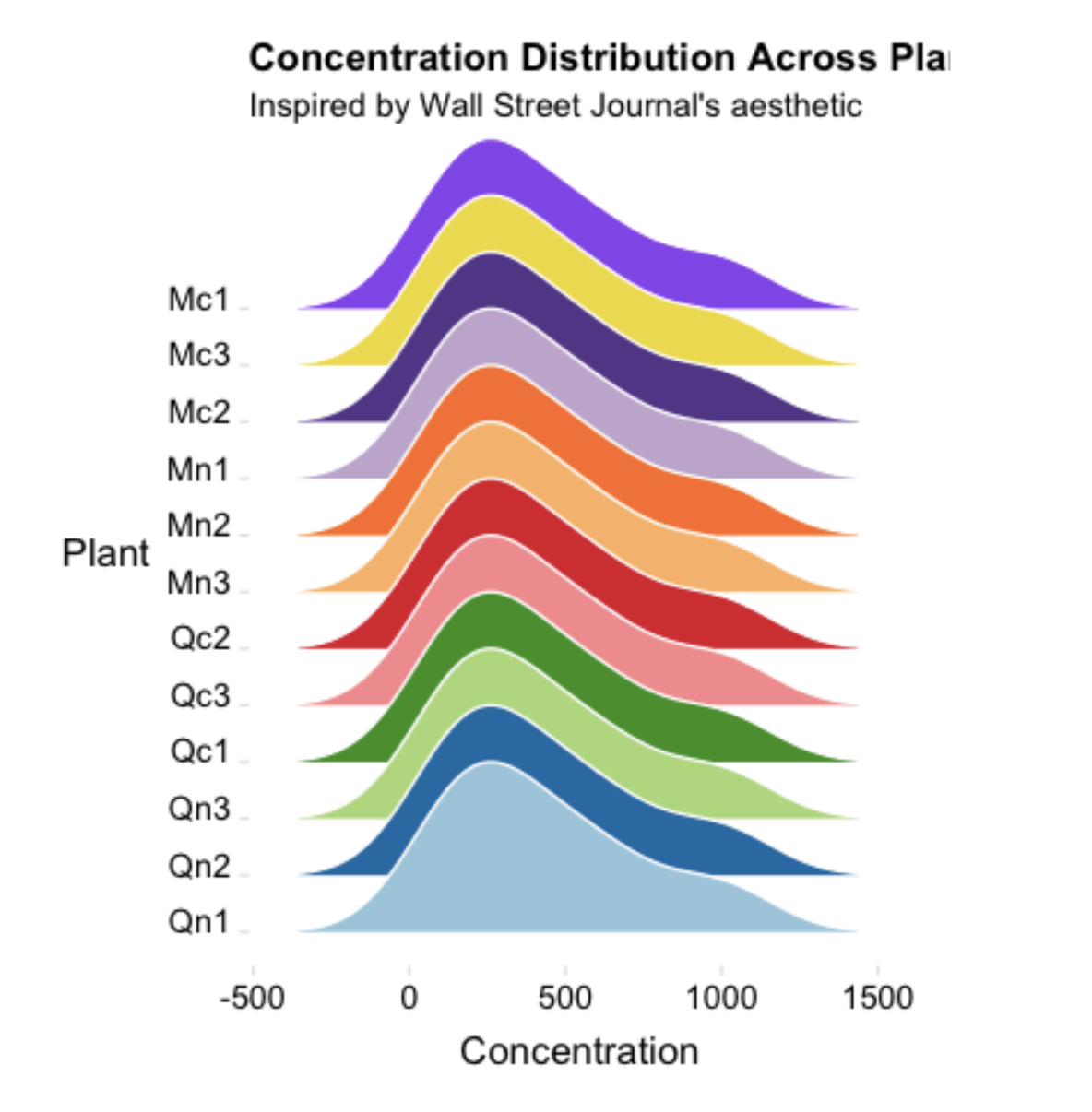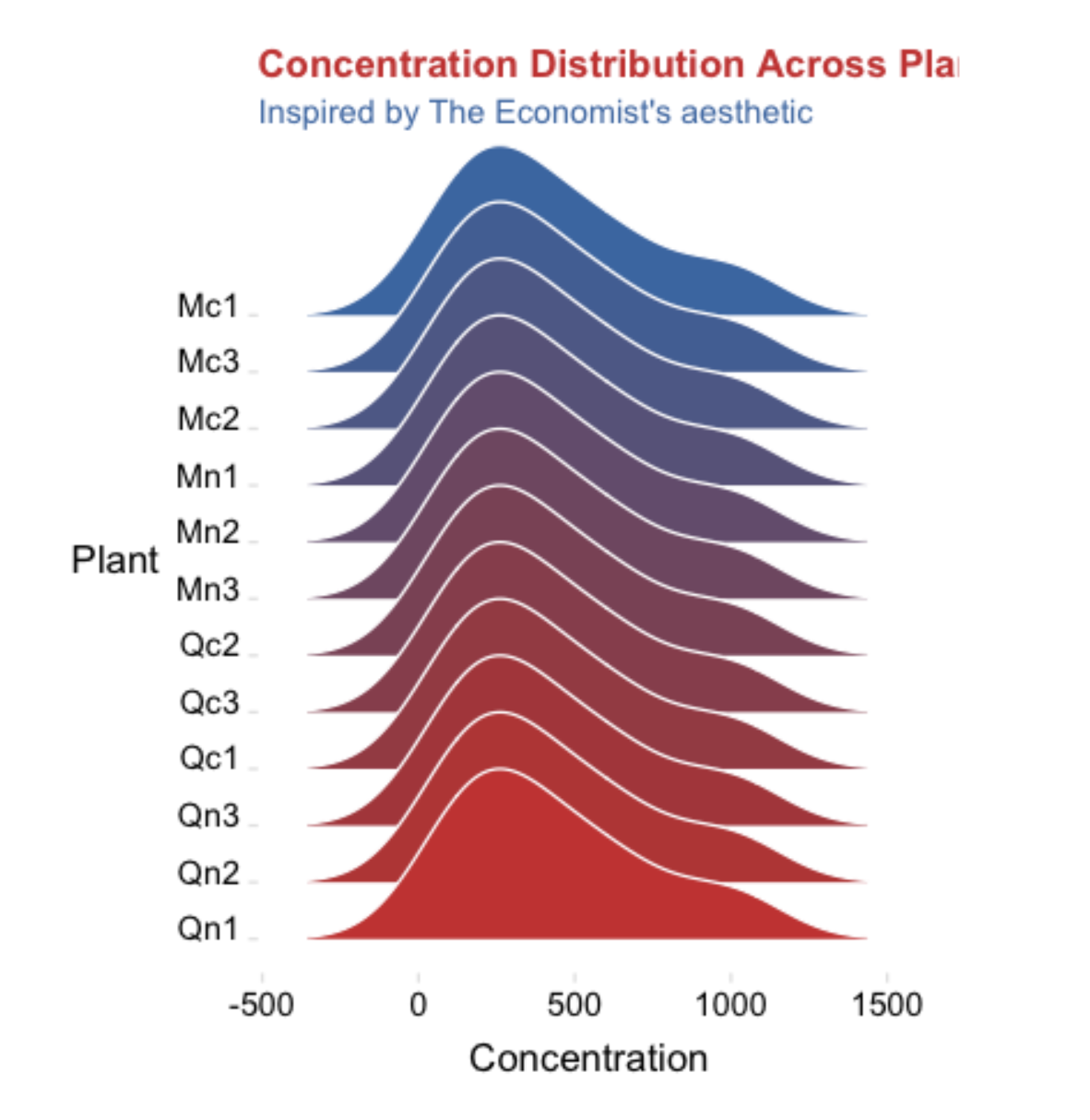 labs(title = "Ridge plot of conc across different Plants",x = "Concentration",y = "Plant")